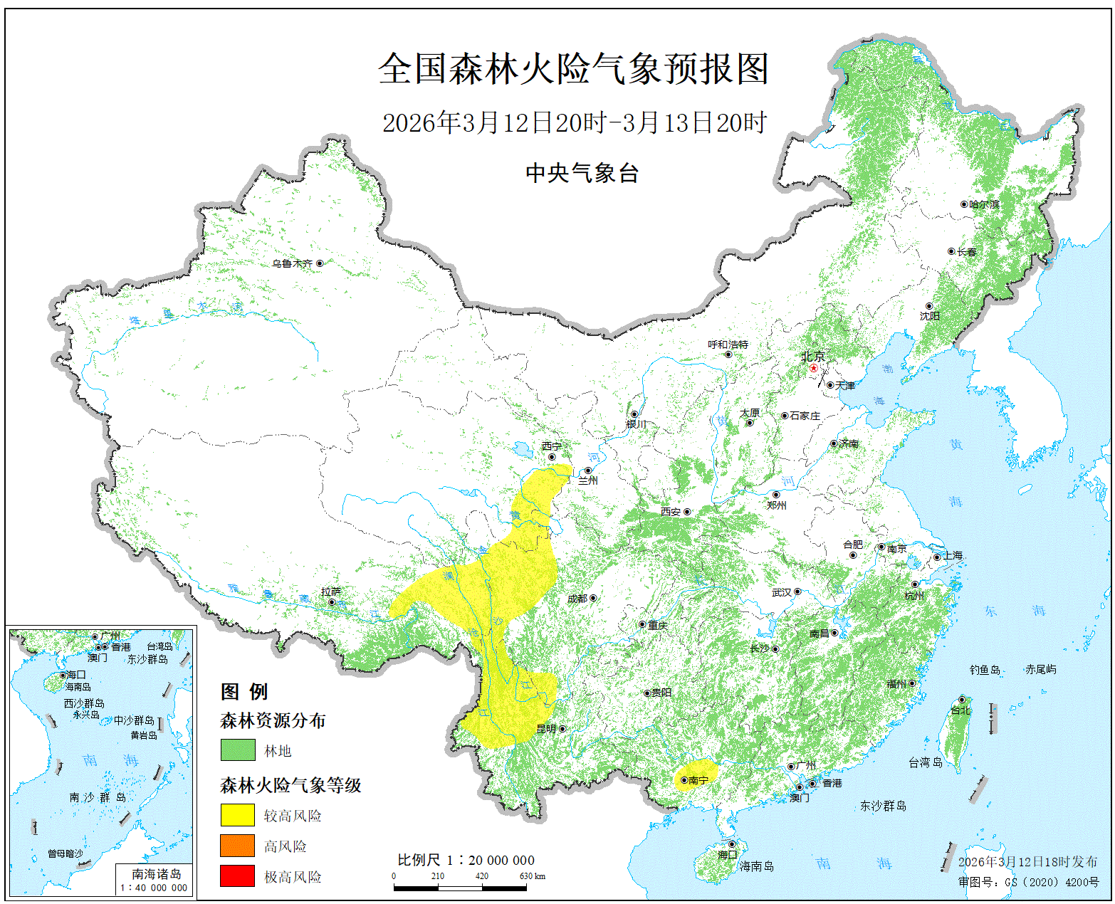 预计,今天晚上到明天白天,四川西部、云南西北部、西藏东部的局部地区森林火...
