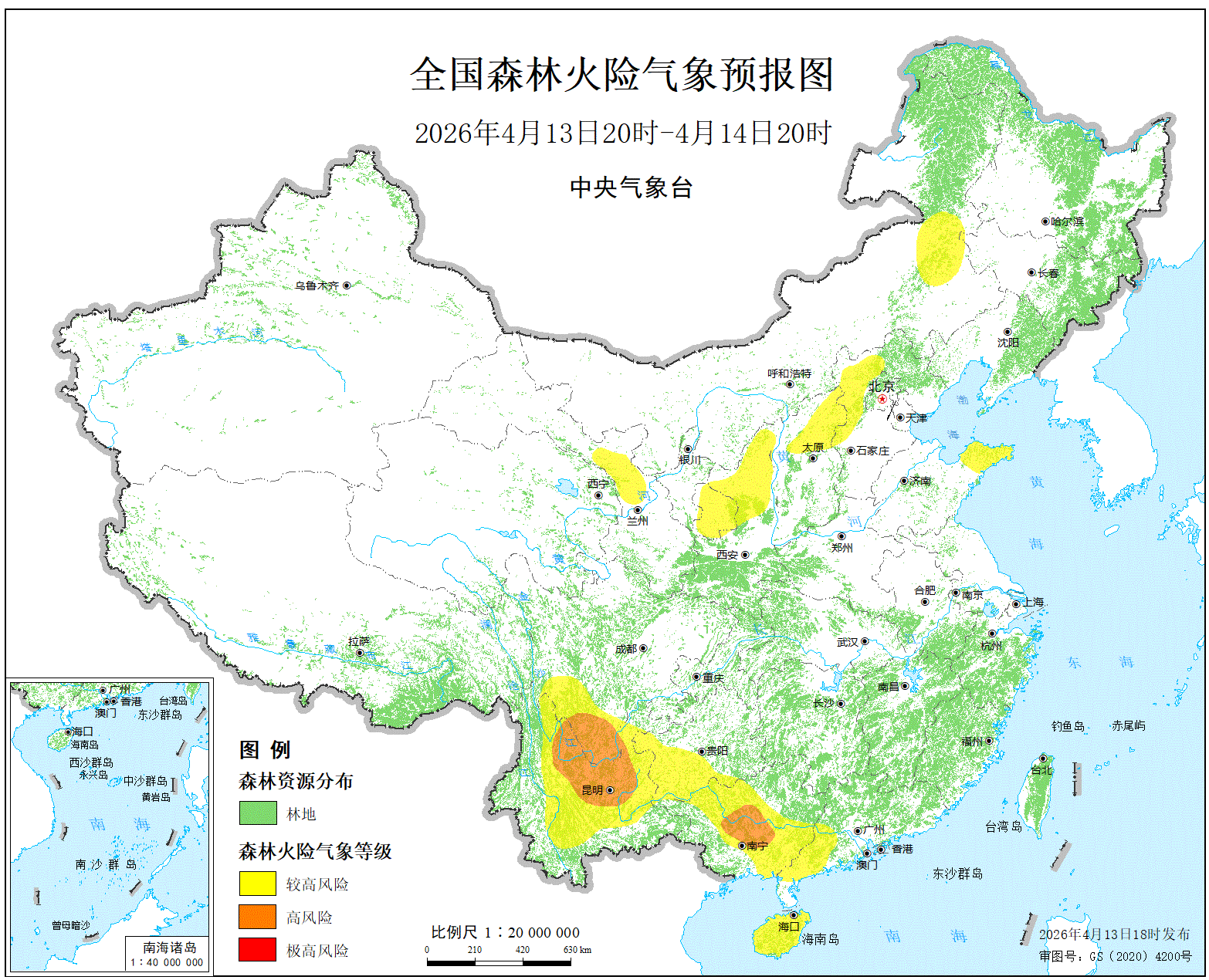 预计,今天晚上到明天白天,广西中部、四川南部、云南中北部的局部地区森林火...