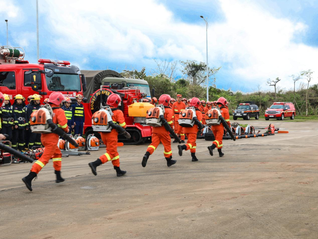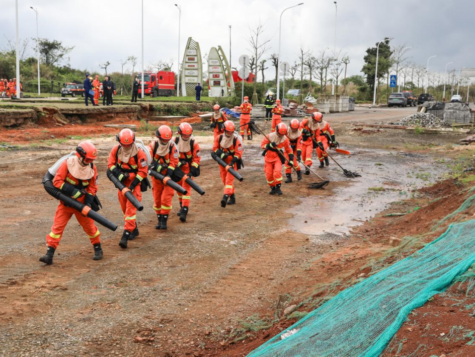 演练模拟海口观澜湖旅游度假区附近林区发生火情,按照接警响应、力量机动、人员装备检查、总结讲评等流程组织实施。此次演练共调动4支队伍,出动110人、21台车、340件(套)装备,按照属地、市(县)级、省级逐级响应调动相应救援力量,梯次向事发地域携装机动,进一步检验了各队伍日常战备、快速出动、机动集结能力,理顺各级力量调动程序,为下步遂行实战任务提供了基本遵循。