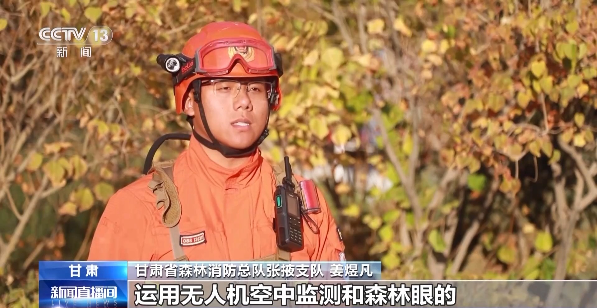 甘肃省森林消防总队张掖支队 姜煜凡:运用无人机空中监测和森林眼的红外热成像技术,我们可以对重点林区和重点地域进行提前监测预警。同时结合地面分队的防火巡护和安全检查,大幅提高了防火工作效率。