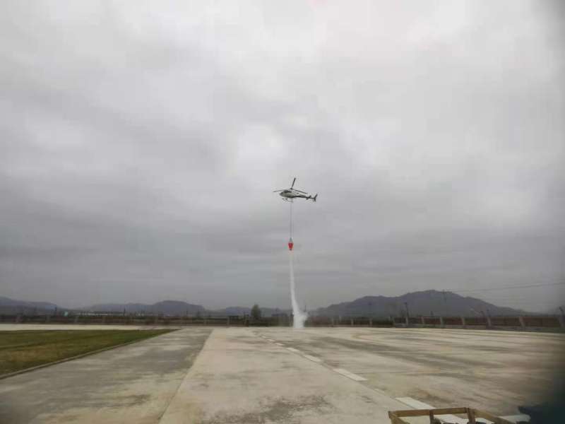 9时10分,H-125直升机悬挂吊桶顺利起飞。按照训练计划,在大庆水库和瀑河上方进行吊桶取水,在预定地点进行定点洒水训练。共计飞行1架次,1小时36分; 洒水4桶,共计4吨,达到了训练预期效果。