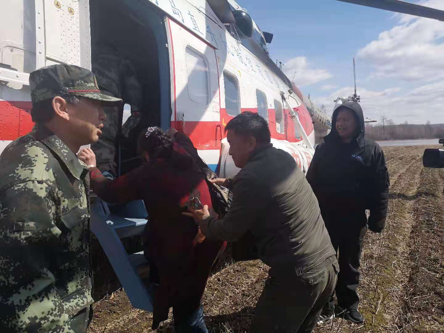 塔河航站接到命令后,迅速向北方航空护林总站上报飞行计划,机组人员做好航前检查,随时准备营救。待飞行计划批复后,M-171直升机于9时30分从塔尔根机场起飞前往灾情现场实施机降救援,顺利将被困人员安全救出,送往图强镇。