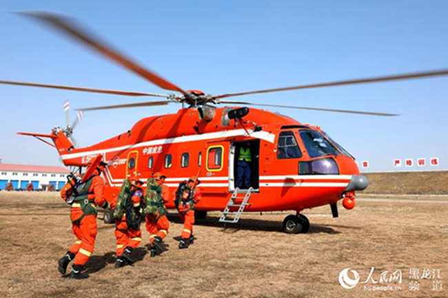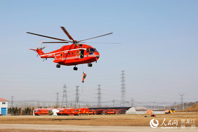 森林火灾大多发生在深山密林,地形环境复杂、危险性较高,往往需要利用直升机作载运工具,将救援力量快速运送到事发地点,从悬停的直升机上,通过绞车装置、纲索、背带设备将救援人员降至地面,进行快速处置,这就需要队员掌握过硬的救援技能。为此,大庆航空救援支队演训任务分队与大兴安岭森林消防支队积极商讨,明确队员编组、施训方法、场地限制、安全措施,并按照先操场再野外实战的模式开展索降训练。民航指挥同意起飞后,机长郭胜驾驶直升机滑出跑道后升空飞向索降训练场。9时许,直升机到达索降区域上空后,调整姿态,进行低高度稳定悬停,随后安全员打开舱门,挂好抛下索降绳,全副武装的索降队员依次快速从直升机上下滑到地面。训练实施过程中,地面指挥员为队员讲解安全注意事项,提出具体要求,安全员严格把关、仔细检查,飞行员按规操作驾驶直升机,索降队员按照操作规程实施,全程保证了训练质量和飞行安全。