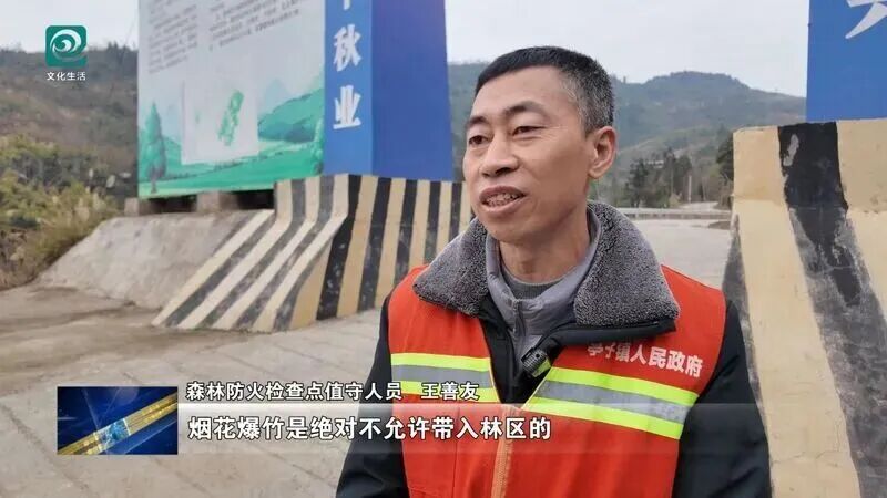 森林防火检查点值守人员 王善友:做到逢车必查、逢人必检、逢火必缴。烟花爆竹是绝对不允许带入林区的,大家都能理解配合。