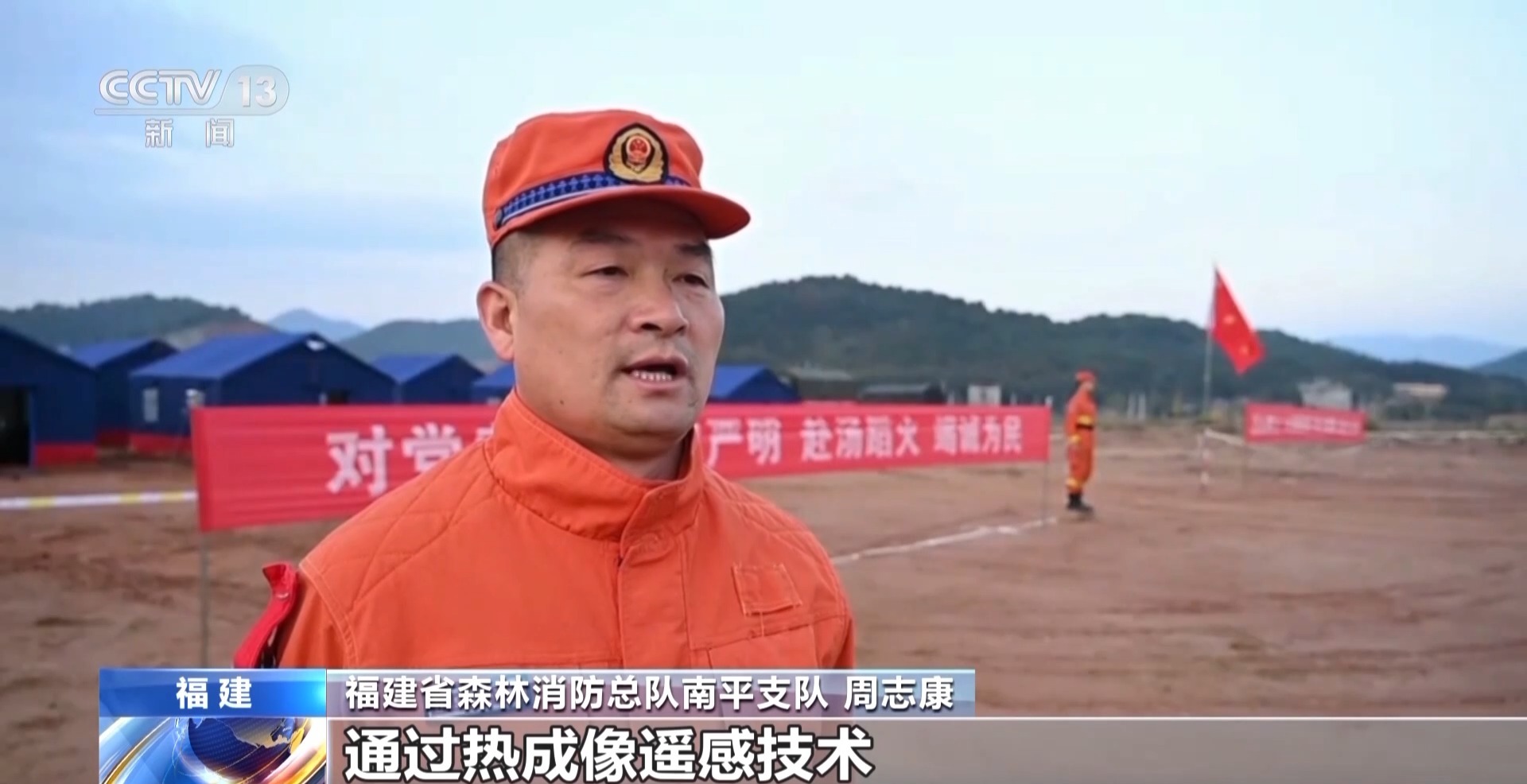 福建省森林消防总队南平支队 周志康:通过热成像遥感技术,当预警平台上出现红色区域发出警报时,就表明当前地区的温度较高,存在火险隐患,我们就会立即联系地面巡护队伍携带灭火装备前往处置。