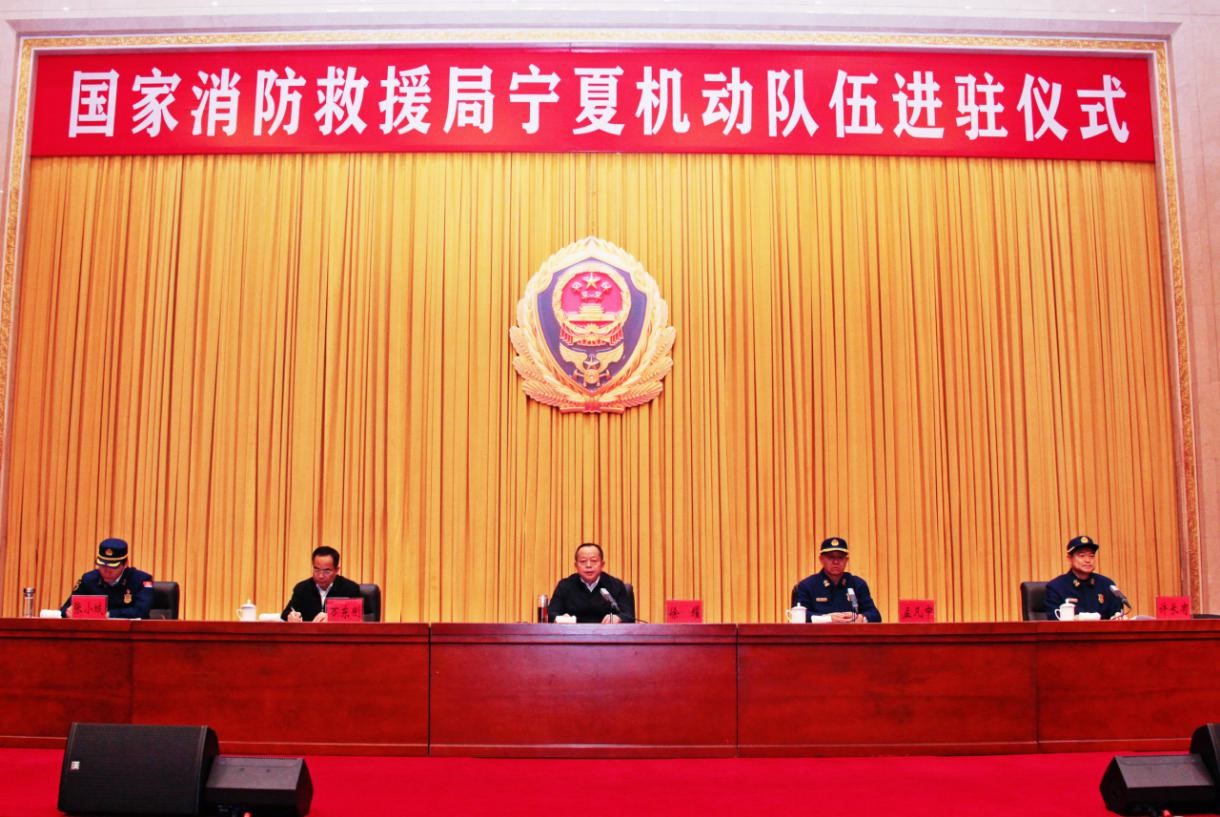 12月28日上午,国家消防救援局宁夏机动队伍进驻仪式在悦海会议中心隆重举行,自治区徐耀副主席,国家消防救援局、甘肃森林消防总队领导,自治区相关厅局、市县领导,及机动队伍全体指战员共300余人出席大会。