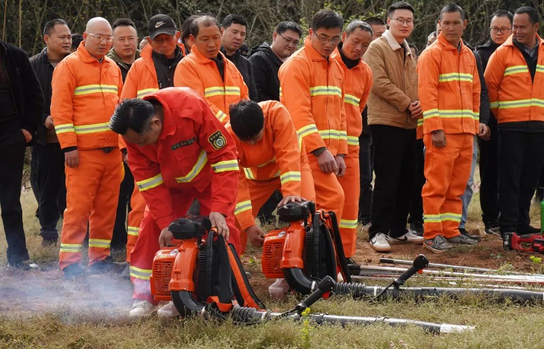 现场,由镇干部组成的24名应急队伍仅用20分钟就完成集结,并迅速分为三个战斗组,分别开展隔离带分割、以水灭火、余火清理等技战术演练。队员们动作娴熟,配合默契,在模拟的火场中争分夺秒,展现出良好的应急处置能力。