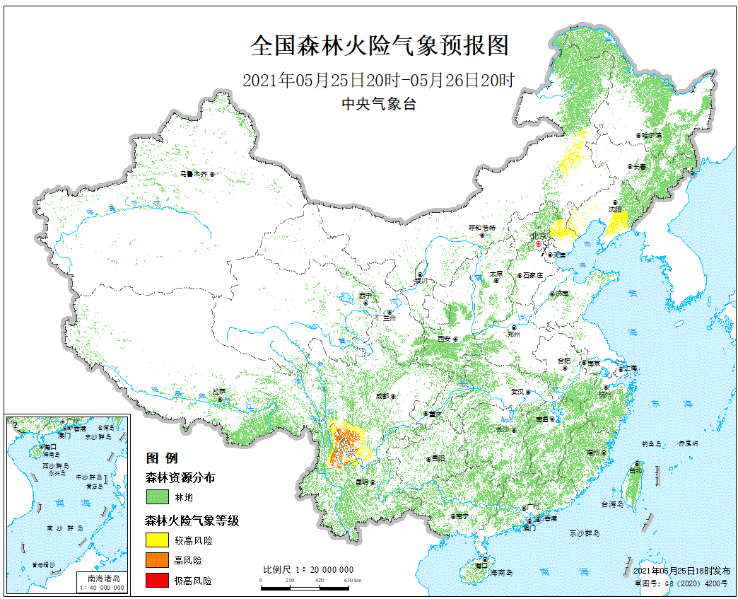据中央气象台5月25日下午预报,今天晚上到明天白天,四川西南部、云南西北部的局部地区森林火险气象等级为高度危险(四级)。