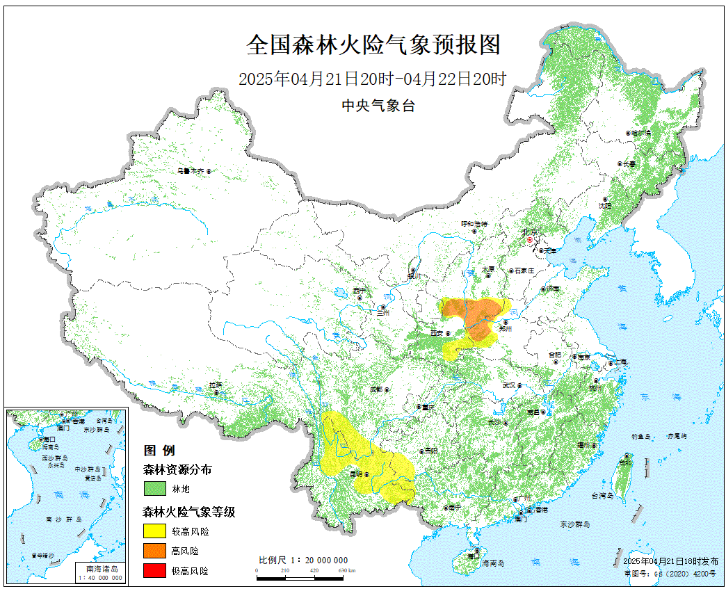 预计,今天晚上到明天白天,山西南部、河南西部、陕西中部的局部地区森林火险等级为高度危险。