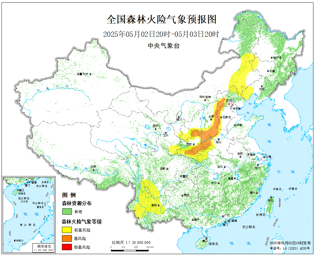 预计,今天晚上到明天白天,河北西部、山西南部和东部、河南西部、陕西中部和南部的局部地区森林火险等级为高度危险。