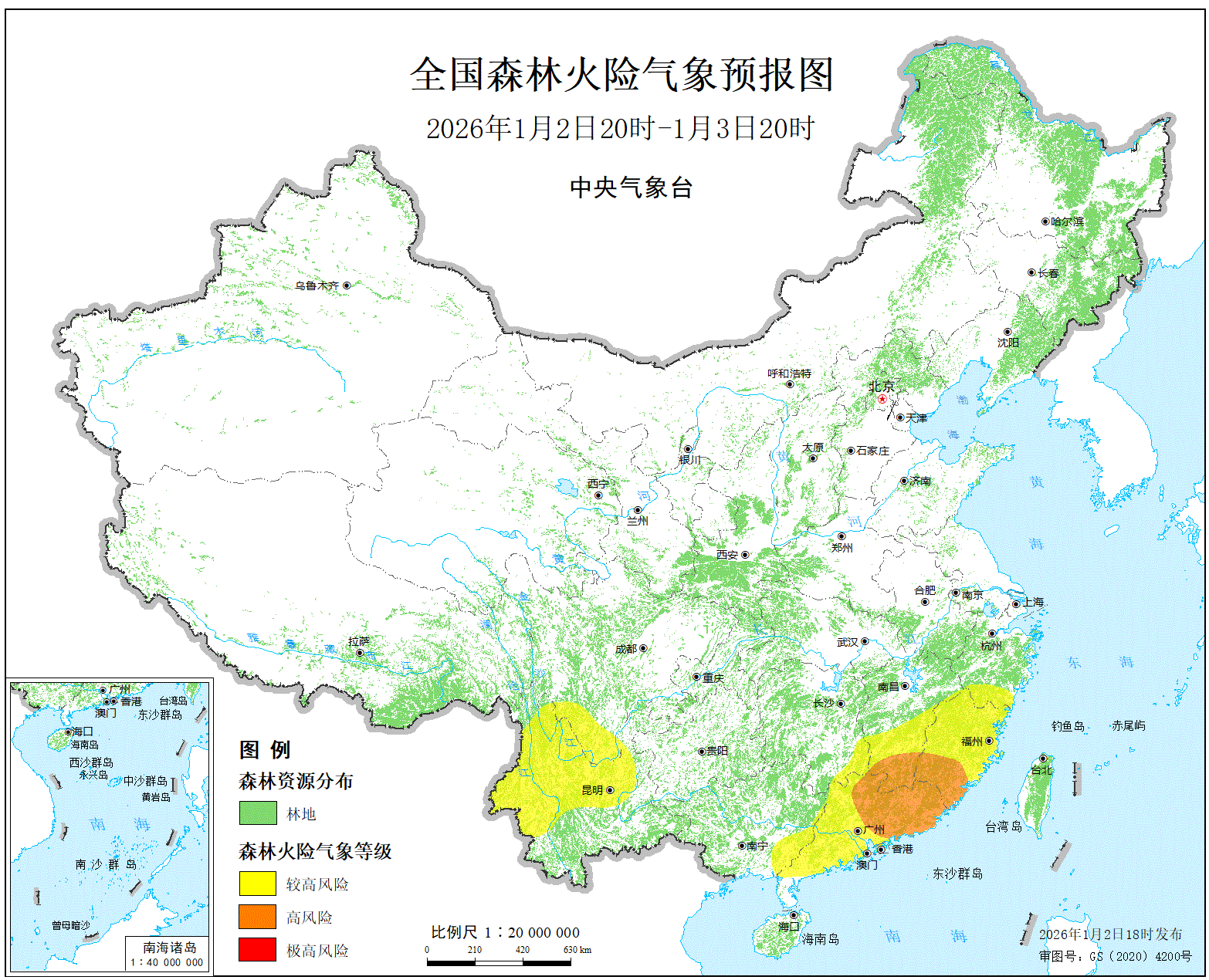 预计,今天晚上到明天白天,福建南部、江西南部、广东东部和北部的局部地区森林火险等级为高度危险。