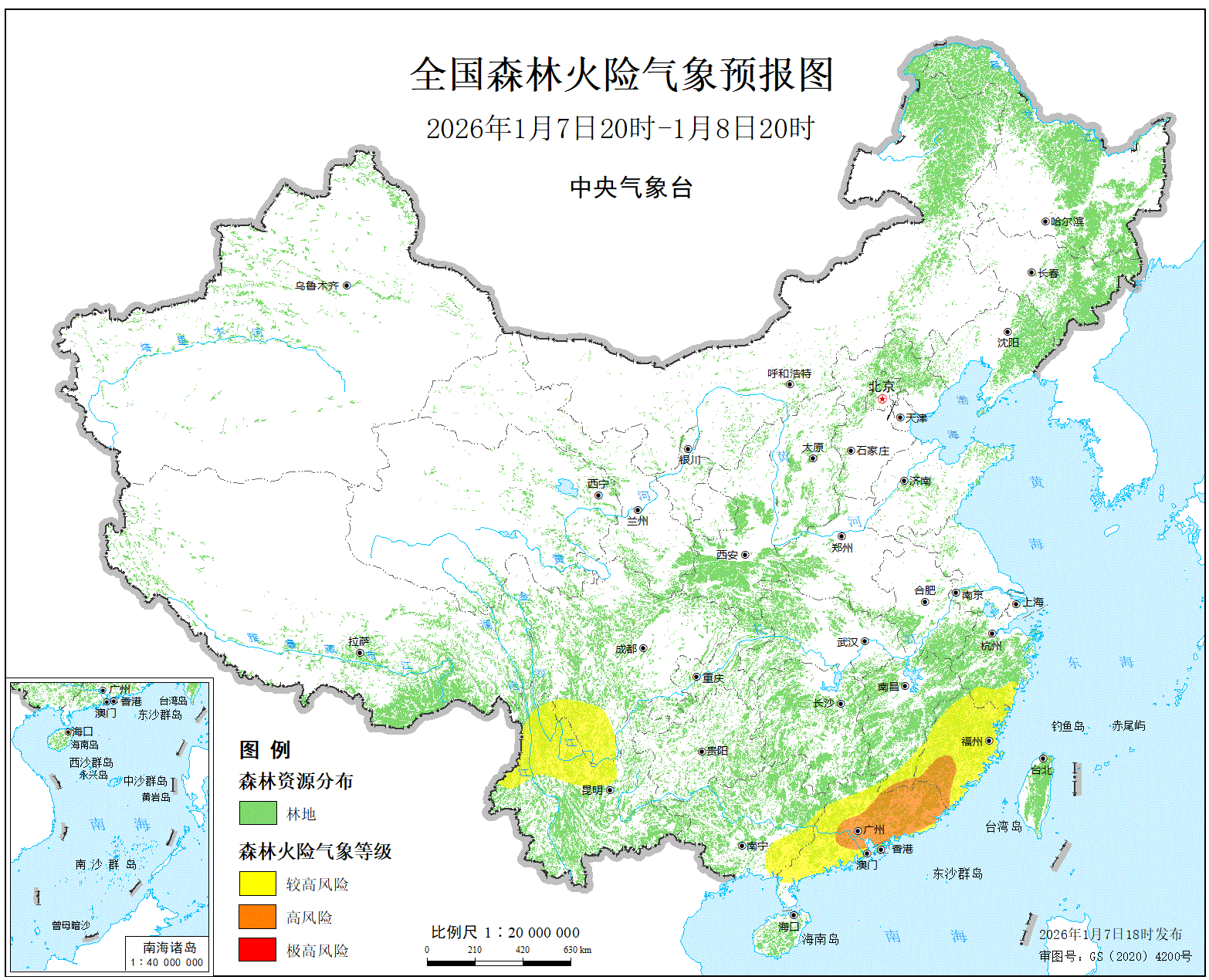 预计,今天晚上到明天白天,福建南部、江西东南部、广东东部和中部的局部地区森林火险等级为高度危险。