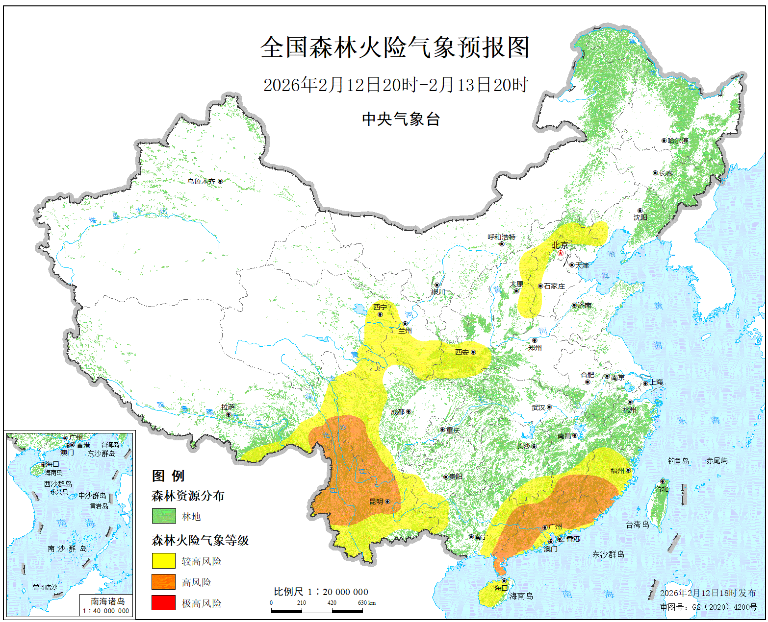 预计,今天晚上到明天白天,福建南部、江西南部、广东大部、广西东部、四川南部、云南中北部、西藏东南部的局部地区森林火险等级为高度危险。