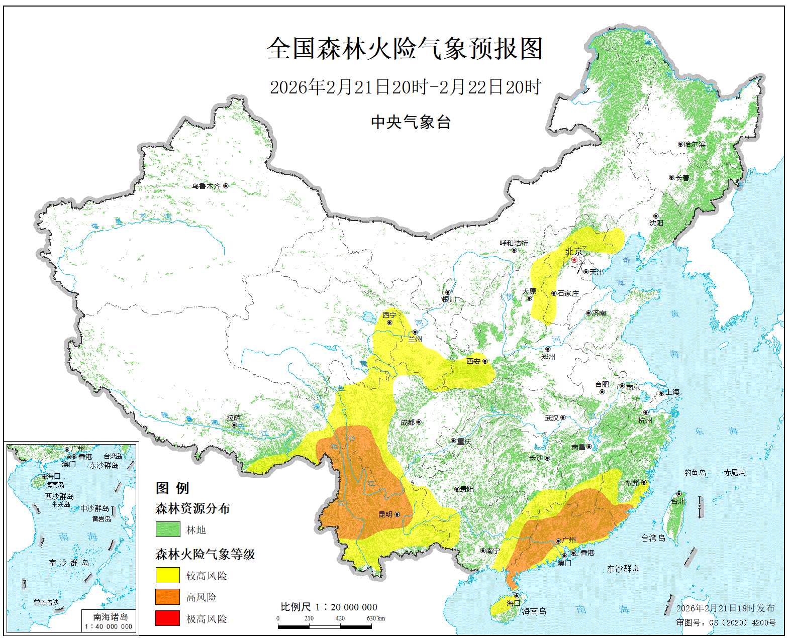 预计,今天晚上到明天白天,福建南部、江西南部、广东大部、广西东部、四川南部、云南中北部、西藏东南部的局部地区森林火险等级为高度危险。