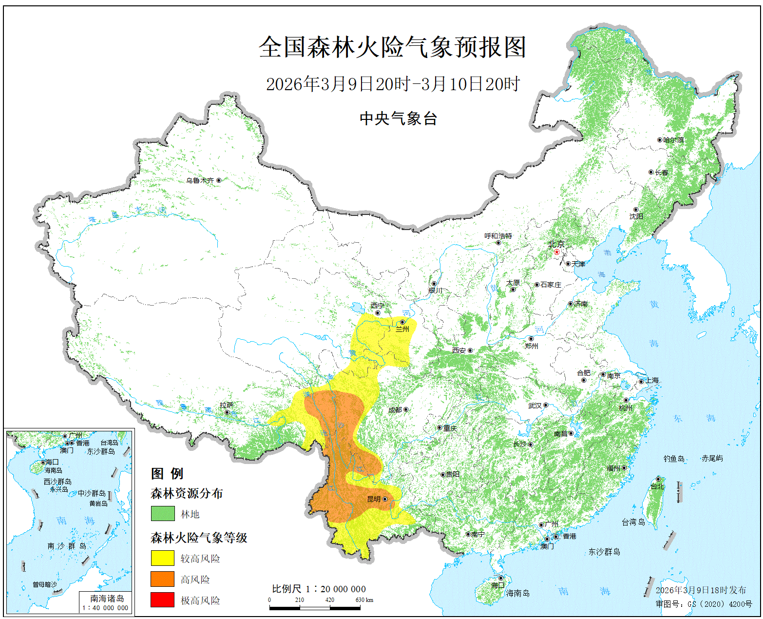 预计,今天晚上到明天白天,四川西部和南部、云南中北部、西藏东部的局部地区森林火险等级为高度危险。
