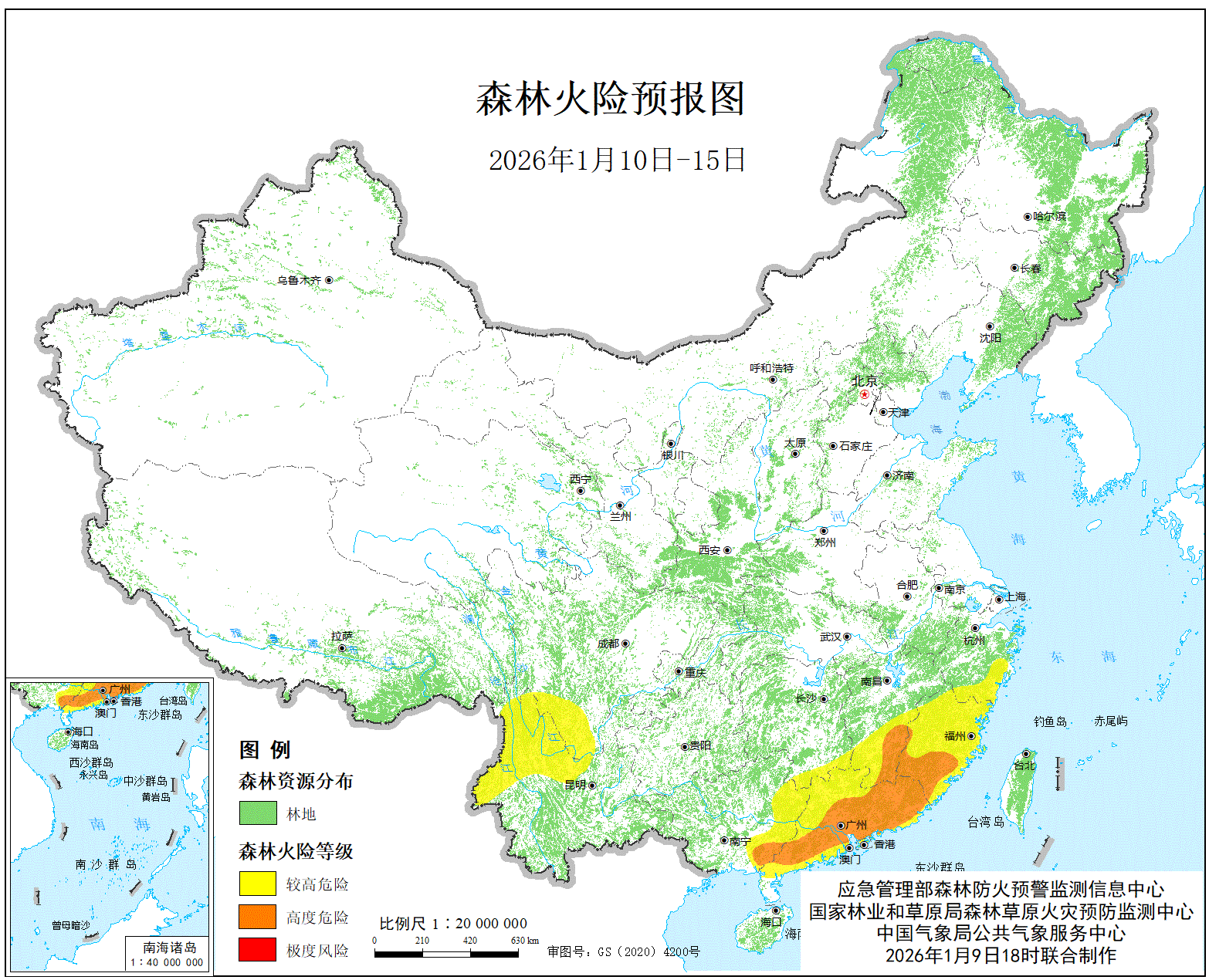 经综合研判,预计2026年1月10日至15日,福建南部、江西东南部、广东东部和南部、广西东南部的部分地区森林火险等级将维持高度危险级别,特发布高森林火险橙色预警,请密切关注火险变化,落实预警响应措施,持续加强火源管控,强化应急准备,有效应对当前严峻的高森林火险形势。