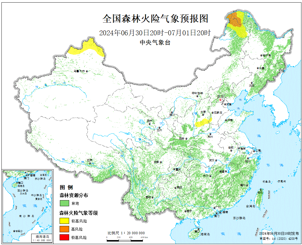预计,今天晚上到明天白天,河北西南部、山西中部、内蒙古东北部、黑龙江西北部、新疆北部的部分地区森林火险等级为较高危险(三级),其中,内蒙古东北部、黑龙江西北部的局部地区森林火险等级为高度危险(四级);全国草原火险等级较低。