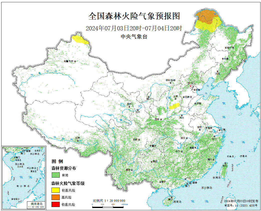 预计,今天晚上到明天白天,山西中部、内蒙古东北部、黑龙江西北部、新疆北部的部分地区森林火险等级为较高危险(三级),其中,内蒙古东北部、黑龙江西北部的局部地区森林火险等级为高度危险(四级);全国草原火险等级较低。