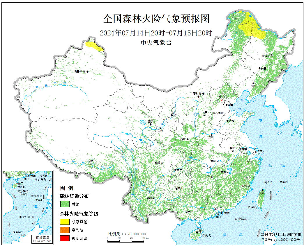 预计,今天晚上到明天白天,内蒙古东北部、黑龙江西北部、新疆北部等地的部分地区森林火险等级为较高危险(三级)。全国草原火险等级较低。