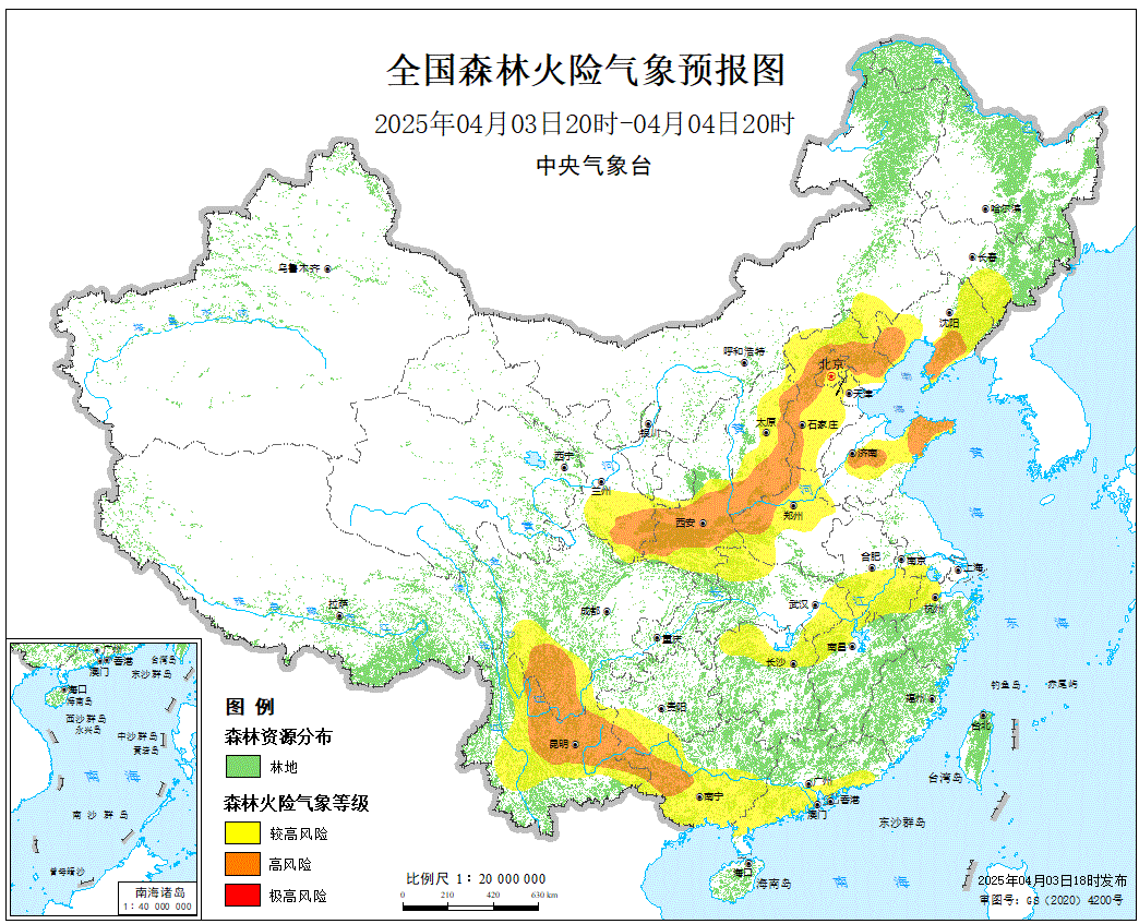 预计,今天晚上到明天白天,北京、天津北部、河北大部、山西中东部和南部、内蒙古东南部、吉林东南部、辽宁西部和南部、江苏西南部、浙江西部、安徽南部、江西北部、山东中东部、河南西部和北部、湖北西北部和东部、湖南北部、广东南部、广西西部和南部、四川南部、贵州西部、云南大部、陕西中部和南部、甘肃南部的部分地区森林火险等级为较高危险,其中,北京北部和西部、河北北部和西部、山西东部和南部、辽宁西部和南部、山东中部和东北部、河南西部、广西西部、四川南部、贵州西南部、云南北部、陕西中部、甘肃南部的局部地区森林火险等级为高度危险。内蒙古东部的部分地区草原火险等级为较高危险。