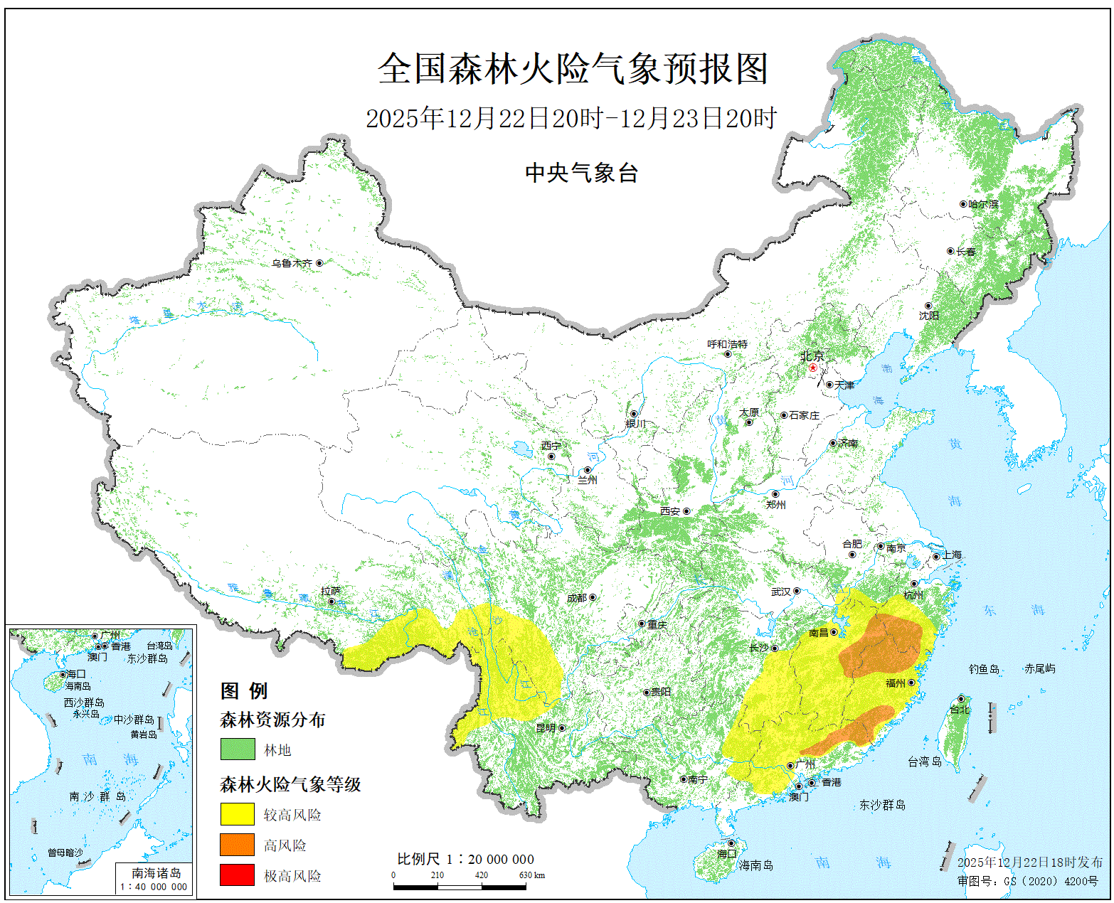 预计,今天晚上到明天白天,浙江西部、安徽西南部、福建大部、江西大部、湖南中东部和南部、广东大部、广西东部、四川西南部、云南西北部、西藏东南部的部分地区森林火险等级为较高危险,其中,浙江西南部、福建北部和南部、江西东北部、广东东部的局部地区森林火险等级为高度危险。全国草原火险等级较低。