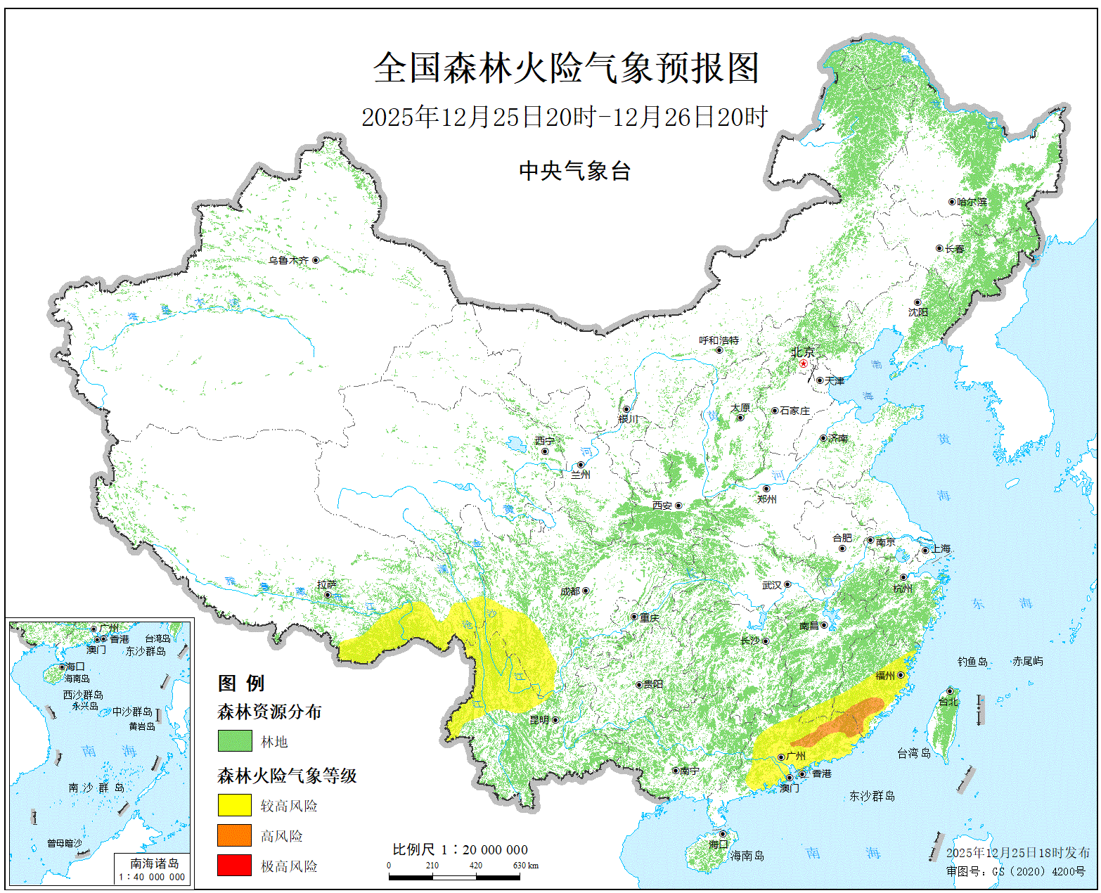 预计,今天晚上到明天白天,福建东部和南部、江西南部、广东大部、四川西南部、云南西北部、西藏东南部的部分地区森林火险等级为较高危险。其中,福建南部、广东东部的局部地区森林火险等级为高度危险。全国草原火险等级较低。