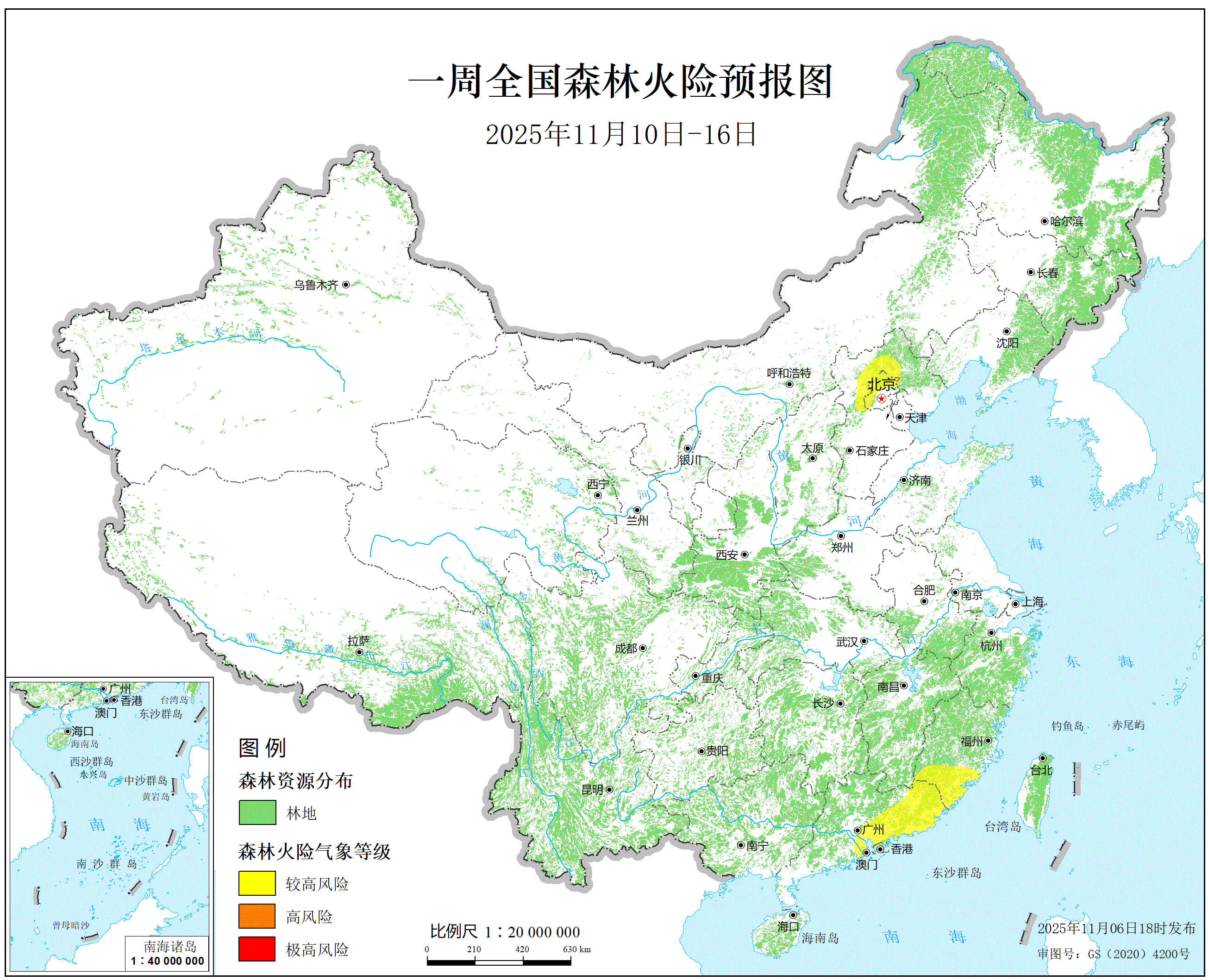 预计本周(11月10日—16日),北京西部和北部、河北北部、福建南部、广东中部和东部的部分地区森林火险等级为较高危险。全国草原火险等级较低。