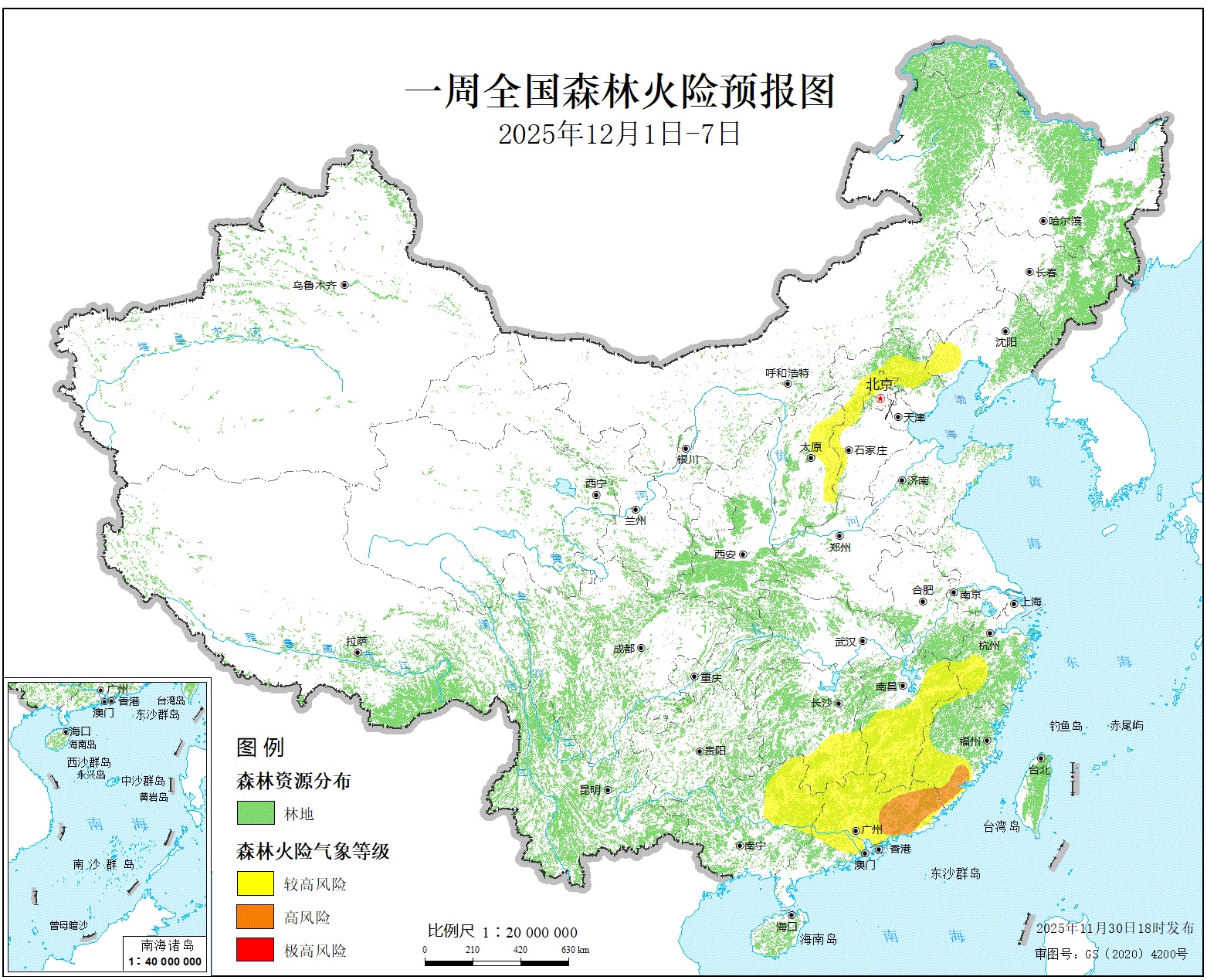 预计本周(12月1日—7日),北京北部和西部、河北北部和西部、山西东部、辽宁西南部、浙江西部、福建南部、江西东部和南部、湖南南部、广东大部、广西东部的部分地区森林火险等级为较高危险,其中,福建南部(泉州、厦门、漳州)、广东东部(惠州、梅州、汕尾、河源、潮州、揭阳)的局部地区森林火险等级为高度危险。全国草原火险等级较低。